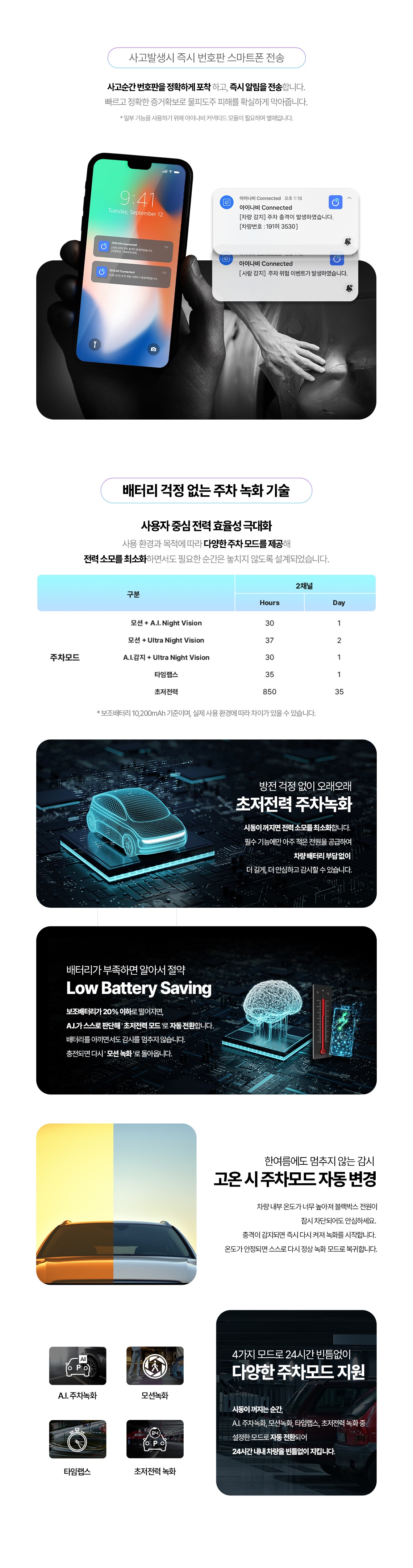 초전력 주차녹화 / 번호판 식별강화